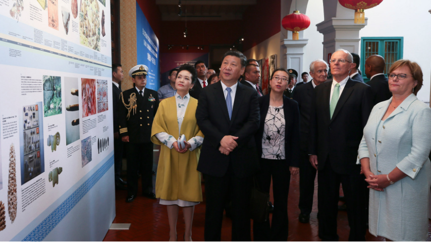 2016年11月21日,中國國家主席習近平和秘魯總統庫琴斯基共同參觀中國外文局在秘魯利馬舉辦的《文明的長河—中拉文明互鑒》圖片展