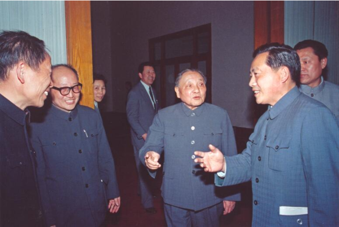 1985年4月,鄧小平同志在為外文局老專家愛潑斯坦慶祝70壽辰前,親切會見時任中國外文局局長范敬宜(右一)和時任《中國建設》(現《今日中國》)第一副總編輯張彥(左二)等