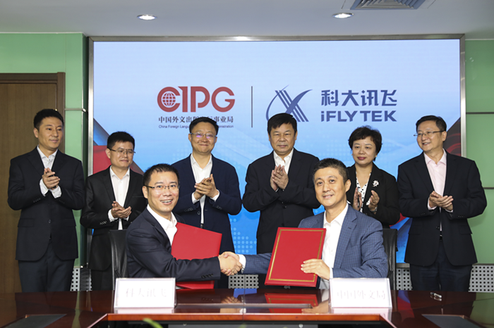 揭牌儀式開始前,中國外文局與科大訊飛簽署了戰略合作協議。