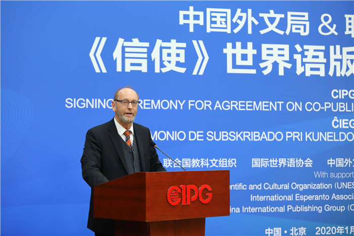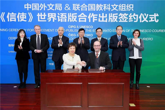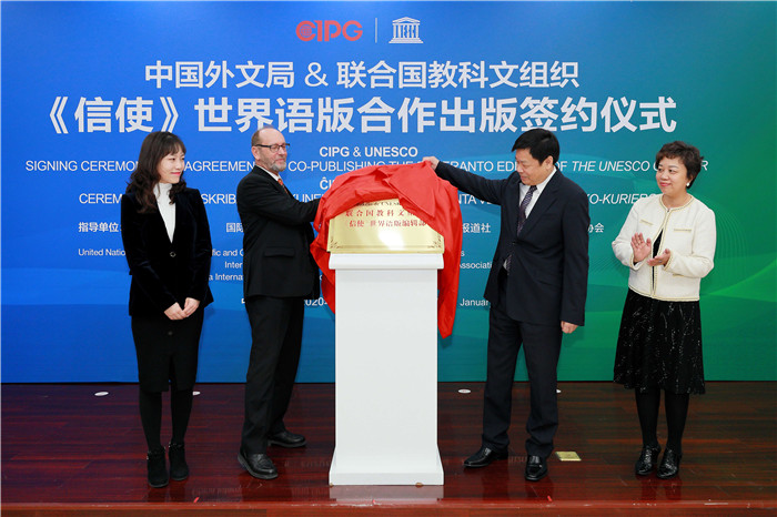 1月7日,聯合國教科文組織旗艦雜志——《信使》世界語版翻譯出版簽約儀式在北京舉行。