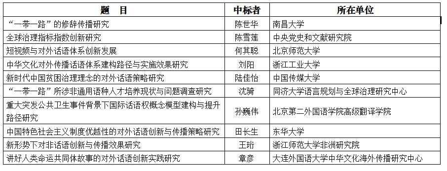 2020年度中國外文局對外話語體系建設課題研究項目招標工作現已結束,評審委員會已完成全部評審工作,現將課題中標結果公示如下(以姓氏拼音為序),公示期為2020年3月25日至4月1日。