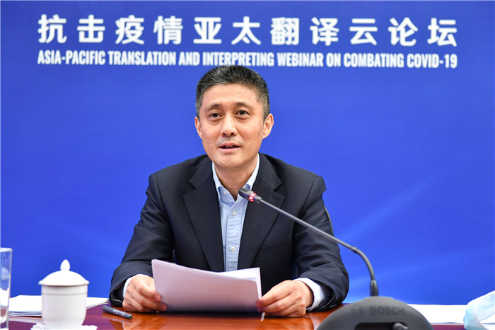 高岸明在致辭中指出,全球抗疫期間,亞太翻譯工作者的不懈努力為亞太各國疫情防控提供了強有力的語言支撐,贏得了廣泛的尊重與認可。他向亞太翻譯界提出四點建議:一是團結協作,凝聚抗疫共識,保護共同家園,共建人類命運共同體;二是抓住機遇,加強隊伍建設,特別是醫療衛生、應急服務領域翻譯人才的培養;三是開拓創新,推動行業發展,利用此次危機帶來的機遇推動翻譯行業調整;四是加強亞太翻譯論壇聯合委員會機制建設,促進亞太區域內翻譯機構和翻譯工作者的交流互鑒和經驗分享,共同推動亞太翻譯的繁榮發展。