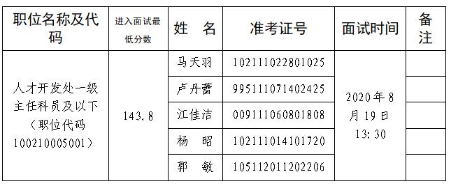 參加面試人數與錄用計劃數比例達到3:1及以上的,面試后根據綜合成績由高到低排序,按不高于2:1的比例確定體檢和考察人選;比例低于3:1的,考生面試成績應達到其所在面試考官組使用同一面試題本的所有人員的平均分,方可進入體檢和考察。體檢和考察安排將另行電話通知考生。