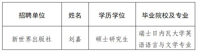 根據有關規定和《中國外文出版發行事業局所屬企事業單位2020年海外留學生招聘簡章》,現將中國外文局新世界出版社2020年度擬接收海外留學生予以公示。公示期間,如有問題,請向中國外文局反映。