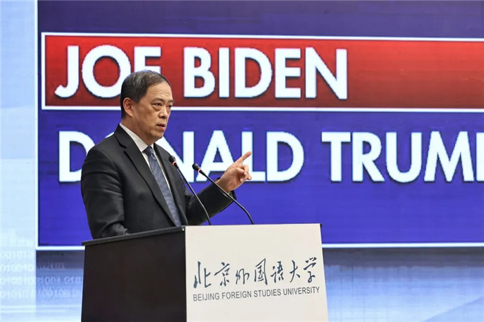 滕建群圍繞《百年未有之大變局下的中美關系》展開分析。他提出,中美關系已進入合作與競爭并存的時代,而中美關系的健康穩定,不僅有利于中美關系長久發展,也有利于世界和平發展,必須以新視角、新眼光來看待這一新變局。