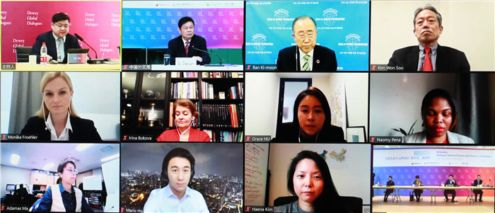 2月3日,由中國外文局國際傳播文化中心和杜威中國中心主辦,潘基文中心、解讀中國工作室協辦的“新生代 新視野:共倡東西方文明對話——杜威全球對話”首場活動在北京舉行。中國外文局局長杜占元、聯合國前秘書長潘基文致辭,聯合國教科文組織前總干事博科娃等國內外嘉賓發表演講,并與中外青年進行了線上交流對話。中國外文局副總編輯陳實出席對話活動。