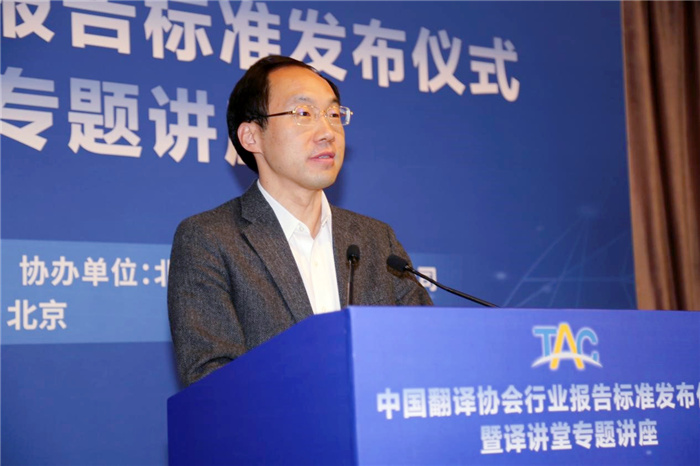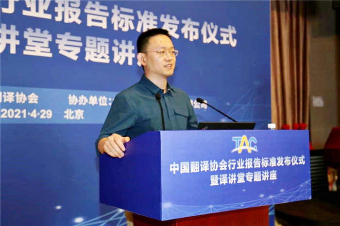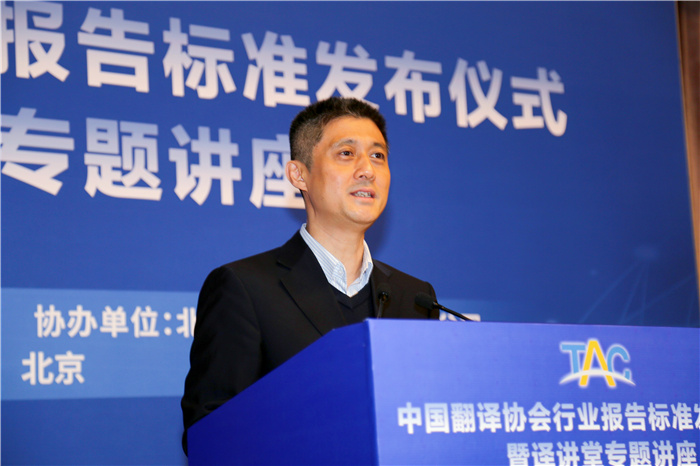 發布儀式后,中國對外翻譯有限公司總經理于洋作了題為《人工智能時代語言科技與服務的創新發展》的專題講座,以大數據與人工智能技術正在重塑全球語言服務產業為宏觀背景,探討語音識別、自然語言處理、機器視覺、知識圖譜等多種技術互相結合,為未來語言服務提供多種個性化、定制化選擇,驅動語言服務行業不斷創新的發展趨勢。
