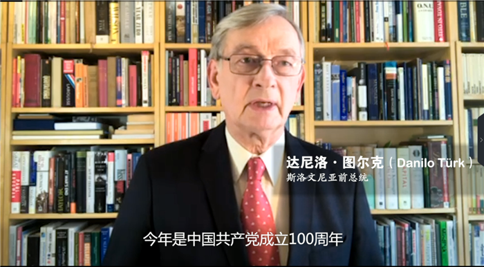 達尼洛·圖爾克在視頻致辭中說,100年來,中國發生的歷史性變革是中國人民的毅力、力量與智慧的有力證明。在改革開放的40多年里,中國取得了尤為矚目的成就。中國消除了極端貧困,人民生活水平不斷提高。中國在發展中堅持以人為本,不斷改善民生,開辟了新的發展道路。