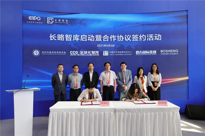 9月3日,長略智庫啟動暨當代中國與世界研究院與全球化智庫全面戰略合作協議簽約活動在2021中國國際服務貿易交易會會場舉行。中國外文局副局長陸彩榮,國務院參事、全球化智庫理事長王輝耀等出席活動并見證簽約。當代中國與世界研究院、全球化智庫負責人進行了在現場簽約,局屬相關單位、局計劃財務部主要負責人參加。