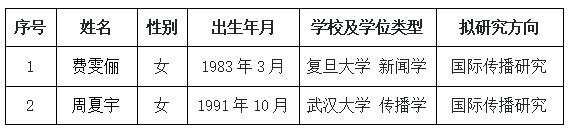 經個人申請、局博士后管理辦公室審核、局博士后指導專家組會審、面試、實踐考察、體檢,現將中國外文局2021年擬招收博士后人員予以公示,公示結束無異議后,報全國博士后管理委員會審批辦理進站。