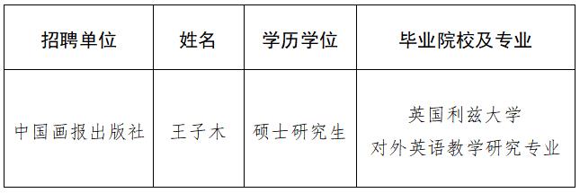 根據有關規定和《中國外文出版發行事業局所屬企事業單位2021年海外留學生招聘簡章》,現將中國外文局中國畫報出版社2021年度擬接收海外留學生予以公示。公示期間,如有問題,請向中國外文局反映。