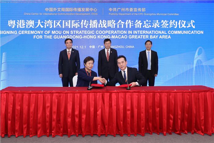 12月1日,中國外文局所屬中國對外書刊出版發行中心(國際傳播發展中心)與廣州市委宣傳部粵港澳大灣區國際傳播戰略合作簽約儀式在2021年“讀懂中國”國際會議(廣州)期間舉行。中國外文局局長杜占元,副局長陸彩榮和廣州市委常委、宣傳部長杜新山出席活動。