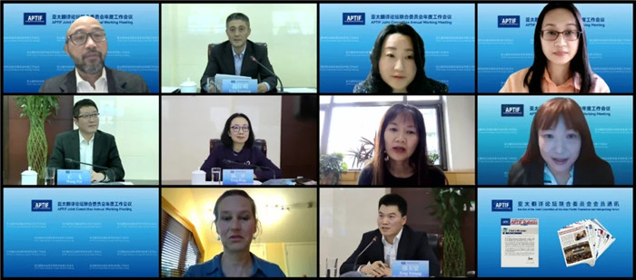 2022年第十屆亞太翻譯論壇承辦方代表、北京外國語大學高級翻譯學院院長任文通報了論壇籌備情況。亞太翻譯論壇聯合委員會成員單位代表就本機構在過去一年中的工作亮點和重點進行了全面梳理和總結,對亞太翻譯論壇聯合委員會所發揮的橋梁紐帶作用給予高度評價,期待聯合委員會在團結亞太翻譯組織、促進亞太翻譯工作者權益等方面發揮更大作用。