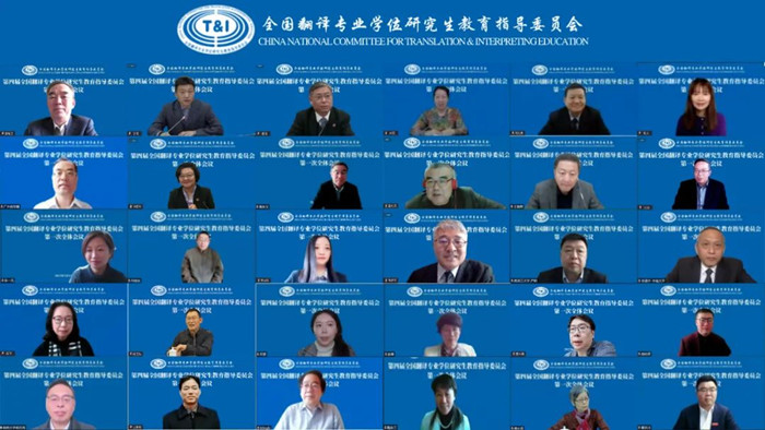 3月12日,第四屆全國翻譯專業學位研究生教育指導委員會以視頻方式召開第一次全體會議。教育部學位管理與研究生教育司(國務院學位委員會辦公室)二級巡視員唐繼衛,第四屆教指委主任委員、中國外文局副局長于濤,教指委專家委員會主任、中國外文局原副局長兼總編輯黃友義出席會議。教指委副主任委員、秘書長及全體委員參會。于濤主持會議并作總結講話。