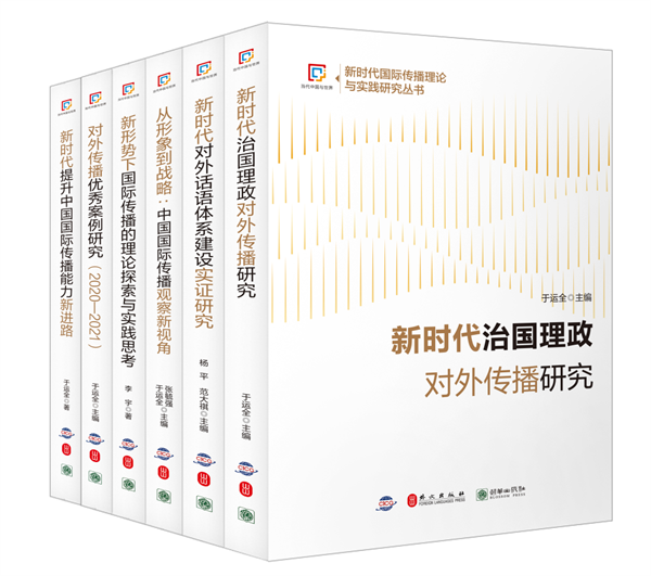 此次出版發行的叢書包括:《新時代治國理政對外傳播研究》《新時代對外話語體系建設實證研究》《從形象到戰略:中國國際傳播觀察新視角》《新形勢下國際傳播的理論探索與實踐思考》,其余兩種(《對外傳播優秀案例研究(2020—2021)》《新時代提升中國國際傳播能力新進路》)將于2022年年內出版發行。