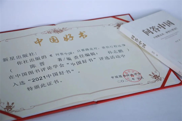 在第27個世界讀書日之際,在中宣部指導下,中國圖書評論學會組織專家評選出了“2021年度中國好書”,中國外文局所屬新星出版社出版的“人民中國”叢書總論卷《問答中國:只要路走對,誰怕行程遠?》入選。這是中國外文局圖書第五次榮獲“中國好書”殊榮,此前,《習近平談治國理政》、《習近平談治國理政》第二卷和《習近平談治國理政》第三卷分別獲評“年度榮譽圖書”另有《擁抱》入選。