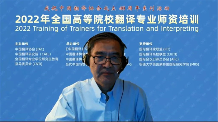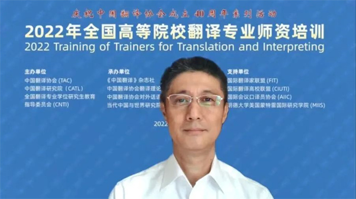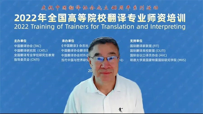 7月16日,由中國外文局所屬中國翻譯協會、中國翻譯研究院和全國翻譯專業學位研究生教育指導委員會聯合主辦,《中國翻譯》雜志社、中國翻譯協會翻譯理論與翻譯教學委員會、中國翻譯協會對外話語體系研究委員會、當代中國與世界研究院對外話語創新研究中心聯合承辦的2022年全國高等院校翻譯專業師資培訓在線上開幕。