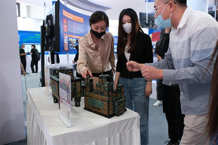 新華網北京9月2日電(薛臣)2022年中國國際服務貿易交易會8月31日在北京開幕。在服貿會首鋼園區,中國外文局展示的文創項目,旨在通過“數字+”的方式,將文化元素嵌入創意設計環節,面向海內外用戶推出數字文化精品。
