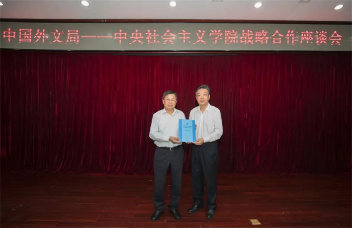 座談會結束后,局長杜占元代表外文局向中央社院贈送了精心挑選的130余套圖書。