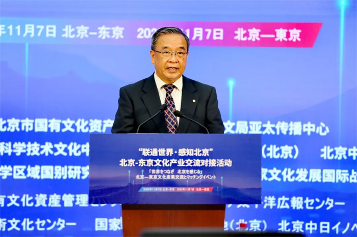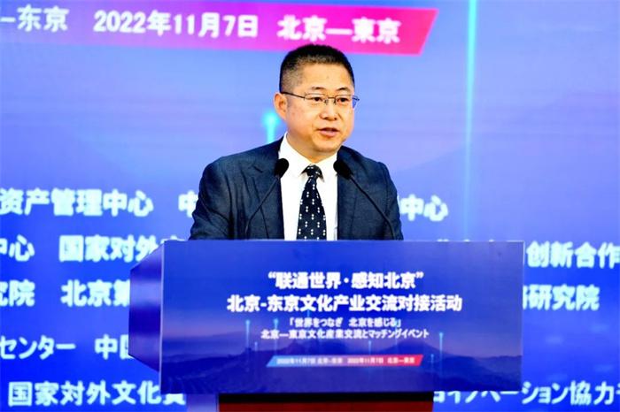11月7日,由北京市國有文化資產管理中心和中國外文局亞太傳播中心共同主辦的“聯通世界·感知北京”北京—東京文化產業交流對接活動在京舉行。中國外文局副局長兼總編輯高岸明發表視頻致辭。商務部亞洲司原司長、中國駐日本大使館原經濟商務公使呂克儉,日本動畫協會理事長、日本手冢株式會社社長松谷孝征等嘉賓與會,中日相關部門及機構負責人、中日商協會代表、文化產業園區、孵化器、投融資機構代表及中外企業家、媒體代表等約200人通過線上線下相結合的方式參加了本次活動。