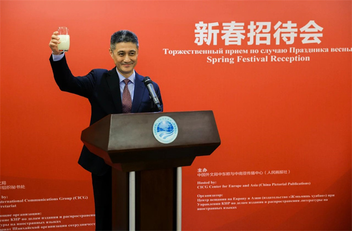 1月13日,上合組織國家駐華使節新春招待會在京舉辦。本次活動由中國外文局、上海合作組織秘書處指導,中國外文局中東歐與中南亞傳播中心(人民畫報社)主辦,中國—上海合作組織地方經貿合作示范區管理委員會支持。中國外文局局長杜占元、上合組織秘書長張明出席招待會。