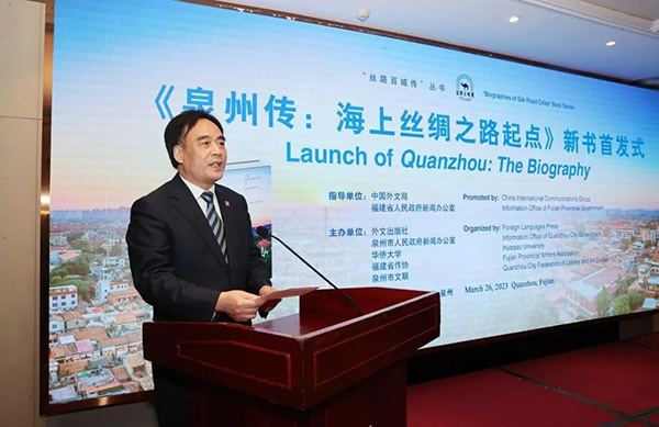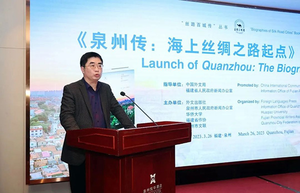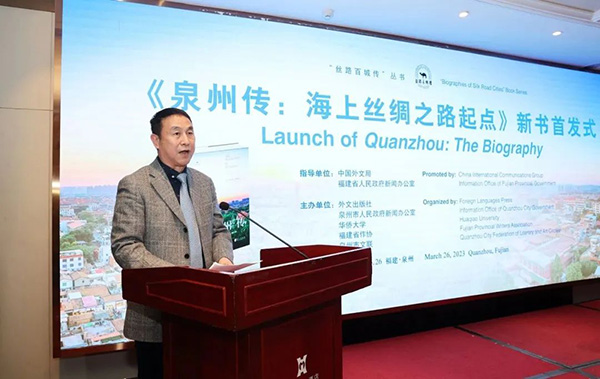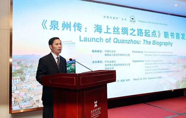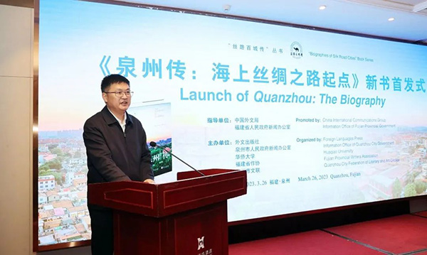 3月26日,由中國外文局、福建省政府新聞辦指導,外文出版社、泉州市政府新聞辦、華僑大學、福建省作協、泉州市文聯主辦的《泉州傳:海上絲綢之路起點》(以下簡稱《泉州傳》)新書首發式在泉州舉行。