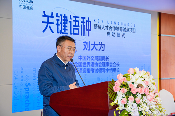 劉大為指出,黨的十八大以來,以習近平同志為核心的黨中央高度重視國際傳播工作,作出一系列重大決策部署。加強關鍵語種預備人才培養是落實中央三部委關于全國翻譯人才隊伍建設有關規劃的具體措施,是助力提升國家翻譯能力、解決非通用語種人才短缺問題的有益探索,關鍵語種預備人才合作培養試點項目前期調研扎實、準備充分,此刻啟動正當其時。他要求,關鍵語種預備人才合作培養工作要以有效服務國家大局為發展方向,緊密結合重慶市突出優勢和特色,創新人才培養的思路舉措,匯聚多方優勢資源,形成推動關鍵語種預備人才培養的整體合力,為加強國際傳播能力建設提供堅實人才支撐。