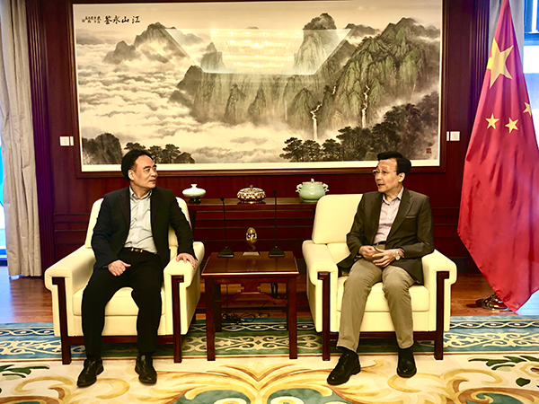 同日,陸彩榮一行拜訪中國駐哈薩克斯坦大使館,與中國駐哈薩克斯坦大使張霄就合作開展人文交流等工作進行探討。