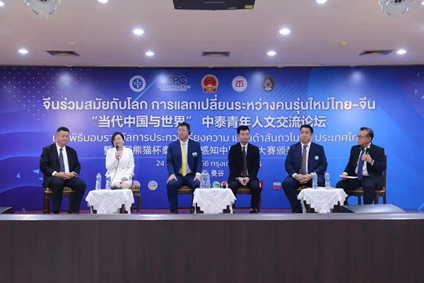 當地時間4月24日,“當代中國與世界”中泰青年人文交流論壇在泰國曼谷舉行。論壇由中國外文局所屬當代中國與世界研究院、中國外文局亞太傳播中心(人民中國雜志社、中國報道雜志社)、泰中“一帶一路”研究中心主辦,中國外文局亞太傳播中心曼谷分社承辦,泰中文化促進委員會、泰國國家研究院泰中戰略研究中心、泰國莊甲盛皇家大學、亞洲領袖通訊社、今日曼谷報社(Bangkok Today)協辦,本次論壇以“共建‘一帶一路’的中泰青年責任與使命”為主題,是“熊貓杯”泰國青年感知中國系列活動的項目之一。
