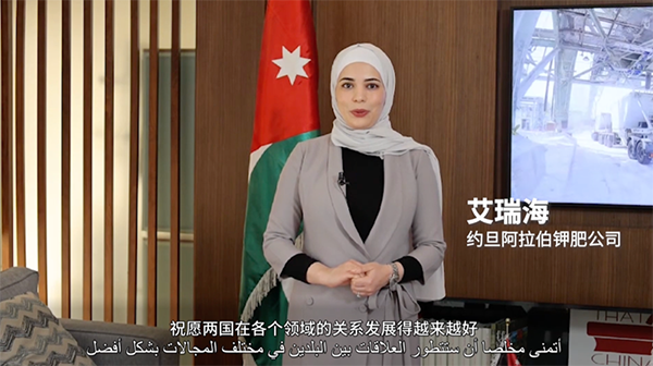 約旦阿拉伯鉀肥公司(APC)員工代表艾瑞海以自己的經歷和觀察進行分享。她表示,中國文化博大精深、風景美不勝收、美食數不勝數、經濟發展不可忽視,阿拉伯鉀肥公司一直十分關注中國故事、重視了解中國文化,希望未來約中兩國人民之間的友誼不斷加深。