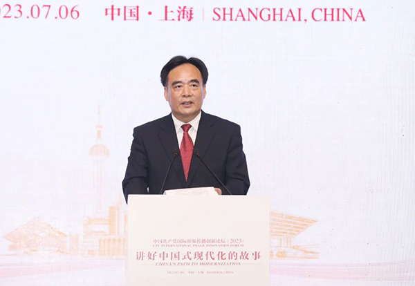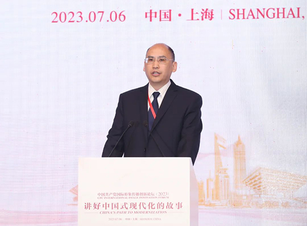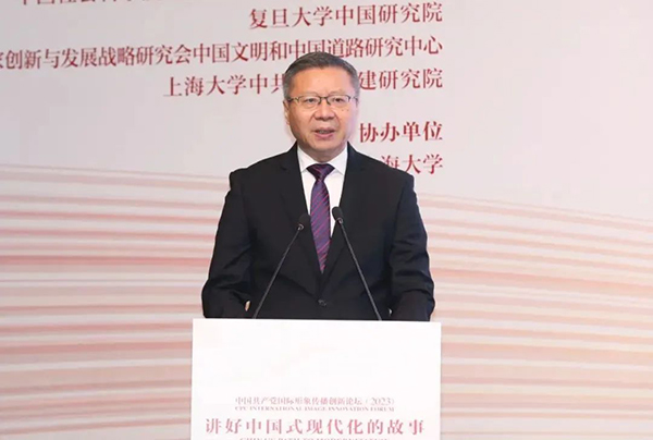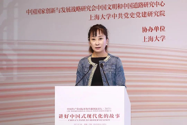 7月6日,中國共產黨國際形象傳播創新論壇(2023)在上海舉行。論壇由中國外文局、中央社會主義學院主辦,中國外文局所屬中國對外書刊出版發行中心(國際傳播發展中心)、中共中央對外聯絡部信息傳播局、中國浦東干部學院中國特色社會主義研究院、中國社會科學院習近平生態文明思想研究中心、復旦大學中國研究院、中國國家創新與發展戰略研究會中國文明和中國道路研究中心、上海大學中共黨史黨建研究院承辦,上海大學協辦。來自中央部委、地方省市、國際組織、高等院校、智庫、媒體、企業等的中外嘉賓以及國際青年代表近200人圍繞“講好中國式現代化的故事”主題深入交流研討。