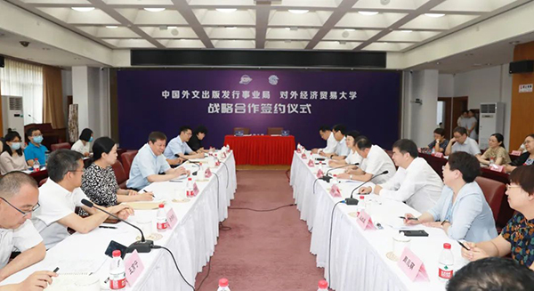 7月10日,中國外文局與對外經濟貿易大學戰略合作協議簽約儀式在對外經貿大學舉行。中國外文局局長杜占元,副局長劉大為,對外經貿大學黨委書記黃寶印,對外經貿大學校長、黨委副書記趙忠秀,對外經貿大學黨委副書記文君,對外經貿大學副校長王敬波出席簽約儀式。