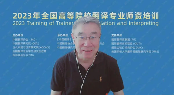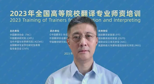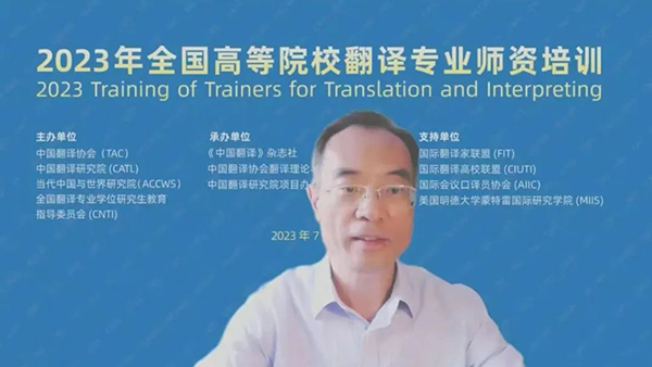 7月15日,由中國外文局所屬中國翻譯協會、中國翻譯研究院、當代中國與世界研究院和全國翻譯專業學位研究生教育指導委員會聯合主辦,《中國翻譯》雜志社、中國譯協翻譯理論與翻譯教學委員會、中國翻譯研究院項目辦公室聯合承辦的2023年全國高等院校翻譯專業師資培訓在線上開幕。中國外文局副局長兼總編輯、中國翻譯協會常務副會長兼秘書長高岸明,中國翻譯協會常務副會長、中國翻譯研究院副院長、全國翻譯專業學位研究生教育指導委員會學術委員會主任黃友義,全國翻譯專業學位研究生教育指導委員會副主任委員、廣東外語外貿大學高級翻譯學院教授趙軍峰等出席開幕式。