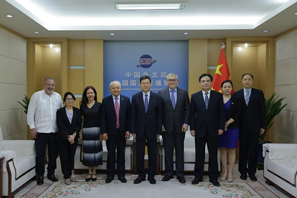 7月31日,中國外文局局長杜占元會見到訪的巴拿馬駐華大使甘林和委內瑞拉駐華大使約夫雷達。副局長陸彩榮,局國際合作部、新星出版社負責同志參加會見。