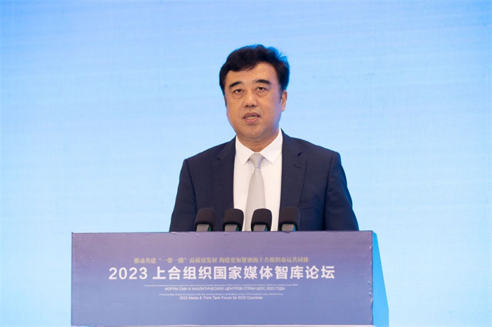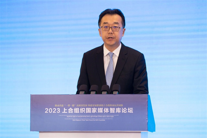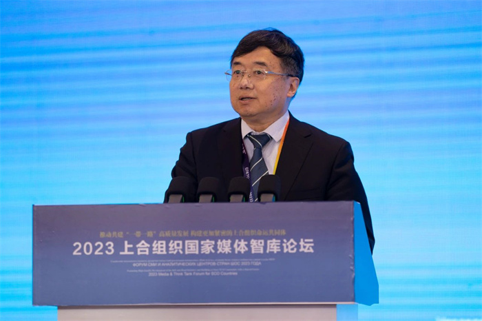 7月28日,2023上合組織國家媒體智庫論壇在山東青島舉行。論壇由中國外文局、上海合作組織秘書處指導,中國外文局中東歐與中南亞傳播中心(人民畫報社)和中國—上海合作組織地方經貿合作示范區管理委員會聯合主辦,“一帶一路”國際傳播研究院、北京對外友好交流促進會、上合經貿研修院(青島)協辦,主題為“推動共建‘一帶一路’高質量發展構建更加緊密的上合組織命運共同體”。