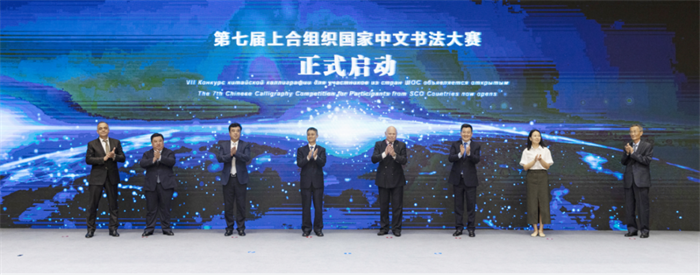 現場嘉賓共同啟動“第七屆上合組織國家中文書法大賽”
