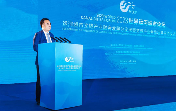 8月24日,由文化和旅游部、江蘇省人民政府共同主辦的2023世界運河城市論壇在揚州舉行。中國外文局副局長陸彩榮應邀出席論壇并在“運河城市文旅產業融合發展分論壇”致辭。