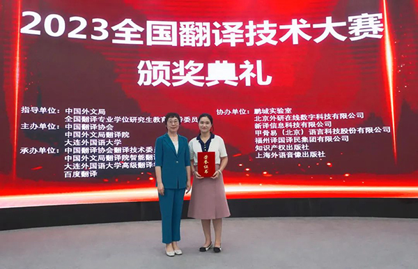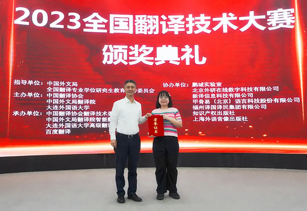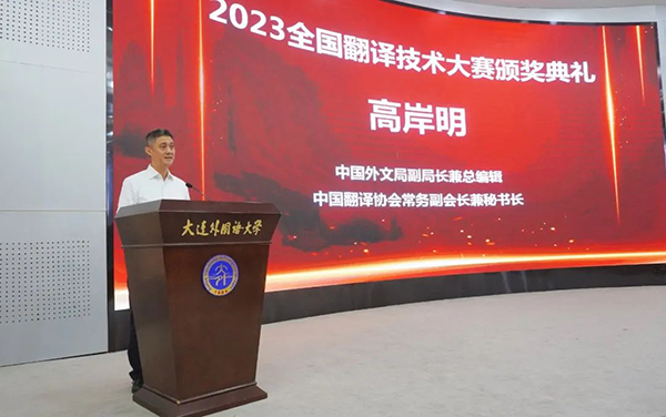 9月1日,由中國外文局、全國翻譯專業學位研究生教育指導委員會指導,中國翻譯協會、中國外文局翻譯院、大連外國語大學聯合主辦的2023全國翻譯技術大賽頒獎典禮暨數字人文時代翻譯實踐與教育模式創新研討會在遼寧舉辦。