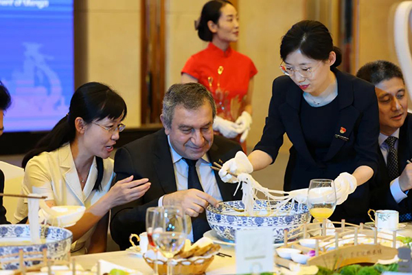 云南省紅河哈尼族彝族自治州州委副書記、州委宣傳部部長應亥宗表示,蒙自作為紅河州州府所在地,是過橋米線的發源地,素有“中國過橋米線之鄉”和“國際(過橋米線)美食名城”的美譽。希望借助蘭花獎這個國際文化交流互鑒平臺、通過“蘭花之夜·橋宴”,把中國西南邊陲的傳統文化展示給各國貴賓和好朋友們,進一步加深友誼,開辟多樣性文化交流互鑒的新局面。