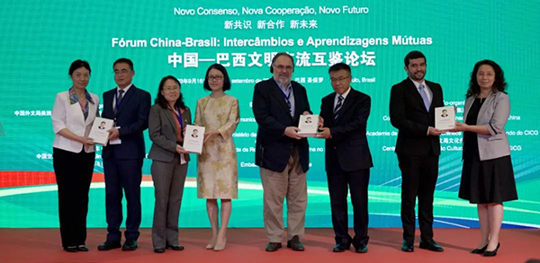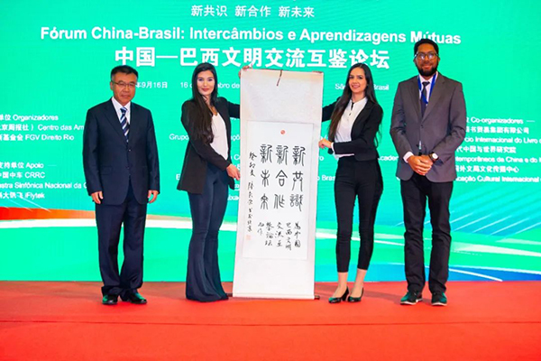 論壇還發布了系列文明交流互鑒成果,包括媒體類成果:《今日中國》“攜手開辟新時代中巴關系新未來”葡文??l布及新版葡文網站上線;學術研究類成果:《中國—巴西Z世代相互文化認知度調查報告》正式發布;文化類成果:中國交響樂團黨委書記周宇攜全團以視頻方式演奏祝福中巴友誼曲目,現場展示中國外文局副局長陸彩榮等人的以中巴友誼為主題的書畫作品并贈送給參會巴方嘉賓,中國書畫家們也通過視頻對中巴友誼送去祝福;此外還配套舉辦了中國—巴西文明交流互鑒成果圖片展。
