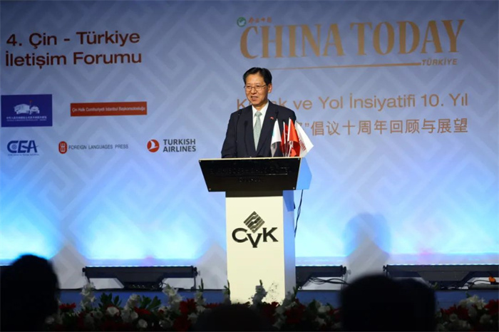 當地時間9月20日,以“‘一帶一路’十周年回顧與展望”為主題的第四屆中土交流論壇在土耳其伊斯坦布爾舉行,中國外文局副局長兼總編輯高岸明、土耳其文化和旅游部副部長賽爾達爾·查穆、中國駐土耳其大使劉少賓、土耳其共和國投資辦公室副主任富爾康·卡拉卡亞、土耳其貿易部國際協定和歐盟司司長胡斯努·迪萊姆萊、土庫瓦茲媒體集團董事局執行董事雅西敏·蓋貝斯出席論壇開幕式并致辭,中國駐伊斯坦布爾總領事魏曉東等中土政府、智庫、媒體、工商界代表約100人出席活動。