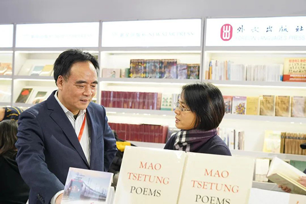 外文出版社攜《習近平談治國理政》等多部領袖著作、“讀懂中國”系列、“絲路百城傳”系列等近五百冊圖書參展,與來自全國近百家經銷商洽談,初步訂貨金額近百萬元。