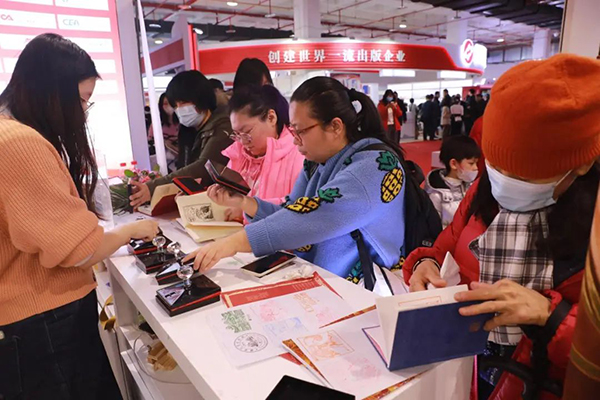 中國外文局展臺推出多種形式的集印章活動吸引了眾多觀眾參與
