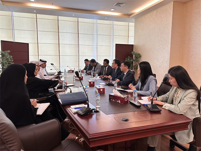 同日,代表團分別訪問卡塔爾文化部、卡塔拉文化基金會、東方報業集團,就加強雙方在圖書互譯、出版、發行、合作傳播等方面的合作達成共識??ㄎ幕恐泶未蟪技幽崮贰ぐ枴ゑR迪德歡迎代表團訪卡,并邀請中國外文局參加多哈國際書展;卡塔拉文化基金會邀請中國外文局參與其下屬的文化獎項平臺,并就聯合圖書選題、中文教學等合作達成共識,東方報業集團就與《今日中國》開展合作傳播積極提出務實建議。