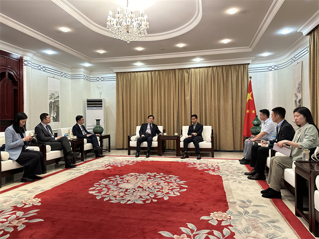 6日上午,代表團一行拜訪中國駐卡塔爾大使館,與中國駐卡塔爾大使曹小林進行會談。陸彩榮介紹了中國外文局國際傳播業務構成及發展。他表示,中卡兩國關系密切,加強文化交流有助于加深彼此了解,中國外文局愿為此發揮所長,促成更多形式的交流與合作。曹小林表示,中卡1988年建交以來,雙方政治、經貿、文化等各領域關系發展迅速,加強雙方媒體與智庫合作將更加有助于增進中卡民眾的相互了解和友好,中國駐卡塔爾大使館希望加強與中國外文局的合作,為促進中卡友好作出更多貢獻。