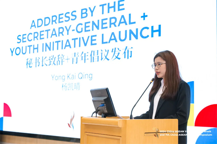 中國—東盟青年代表楊凱晴致辭并發出青年倡議。她回顧了中國—東盟青年風匯的發展歷程,強調青年擁有塑造社會未來和推動切實變革的巨大力量,并代表青年們表達對中國—東盟的共同愿景:中國—東盟青年將在多元中尋求共鳴、促進地區對話與合作、在地區事務和政策制定中發出聲音、為文化交流和文明互鑒作出貢獻。