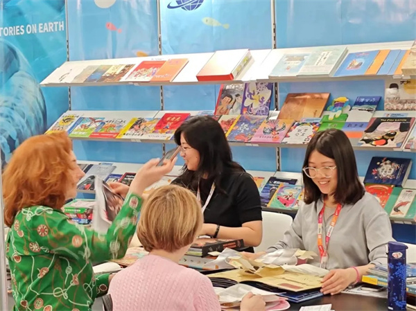 中國外文局展臺共展出精品圖書數百種,富有中國元素的童書吸引了來自世界出版商的關注。參展期間,團組在外文局展臺接待了來自美國、英國、俄羅斯、日本、印度等國家的合作伙伴,成功達成中國原創兒童文學、圖畫書、少兒科普等類型圖書的多項版權輸出和國際合作出版意向。團組還接待了印度欽奈、阿聯酋沙迦書展組委會來訪。