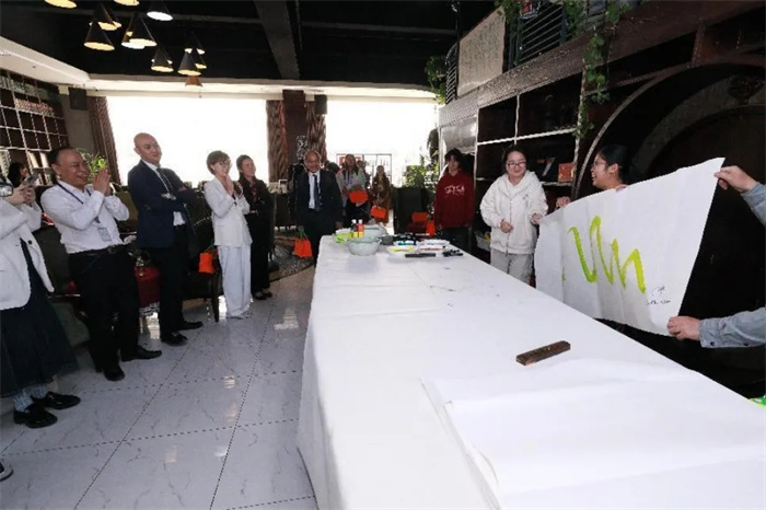 中外嘉賓參加《五百筆·瀾湄合作》集體藝術創作