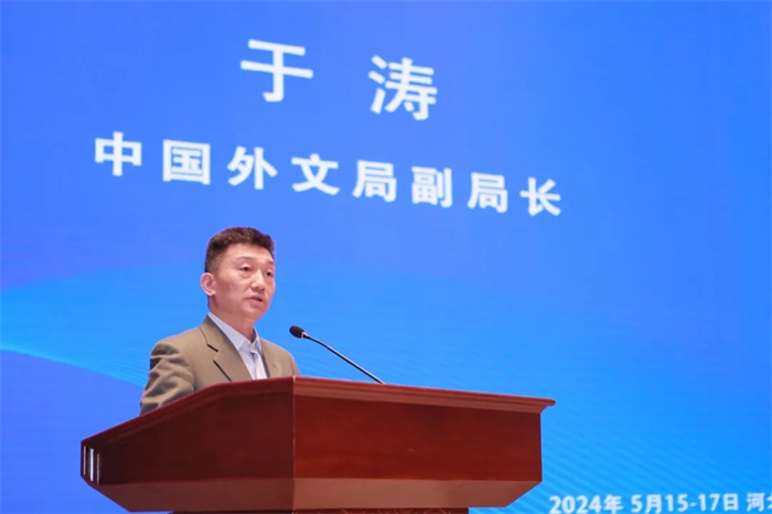 于濤表示,當今時代,全球化、多元化的國際出版合作,是促進人類文明交流互鑒、豐富世界文明百花園的重要途徑。中國外文局是新中國國際出版合作的開創者、堅守者,也是今天中國出版走出去的重要推動者、參與者。近年來,中國外文局及所屬外文出版社面向世界出版發行的《習近平談治國理政》第一至四卷多語種圖書,目前已出版41個語種,發行到全球180個國家和地區,為國際社會全面了解中國發展理念、發展主張、發展道路打開了一扇“思想之窗”。