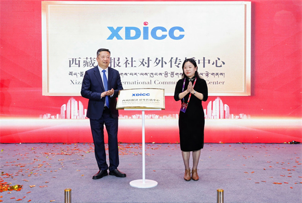 廖懇與趙麗君為西藏日報社對外傳播中心揭牌